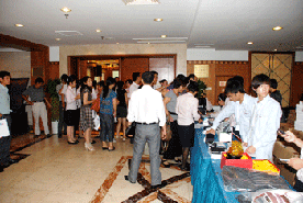 2010年9月19日鹽城瀛洲賓館,歡慶的樂曲喜悅而嘹亮,“緣”月中秋-2010百度中秋客戶答謝會的宣傳橫幅高高懸掛在酒店門庭。下午14:00思科的員工分列在酒店大廳歡迎前來參加會議的嘉賓。在引導員的帶領(lǐng)下,嘉賓們陸續(xù)來到簽到處簽到。