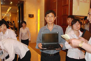 新穎的抽獎(jiǎng)模式讓客戶大嘆驚奇,領(lǐng)取筆記本的喜悅隨處可見