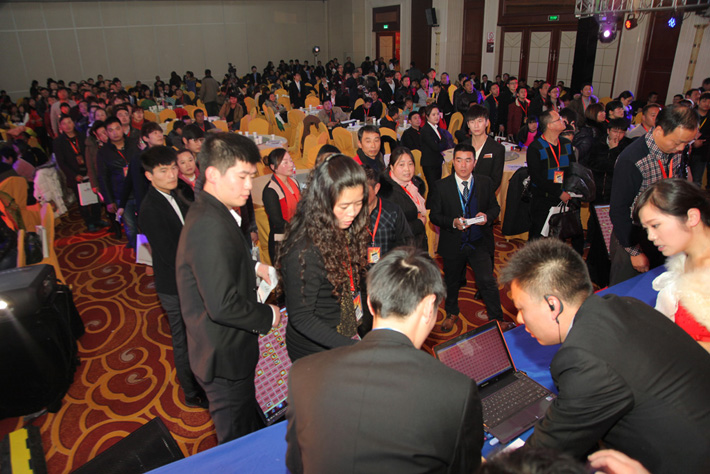 簽到區(qū)一片繁忙,工作人員為其核對信息