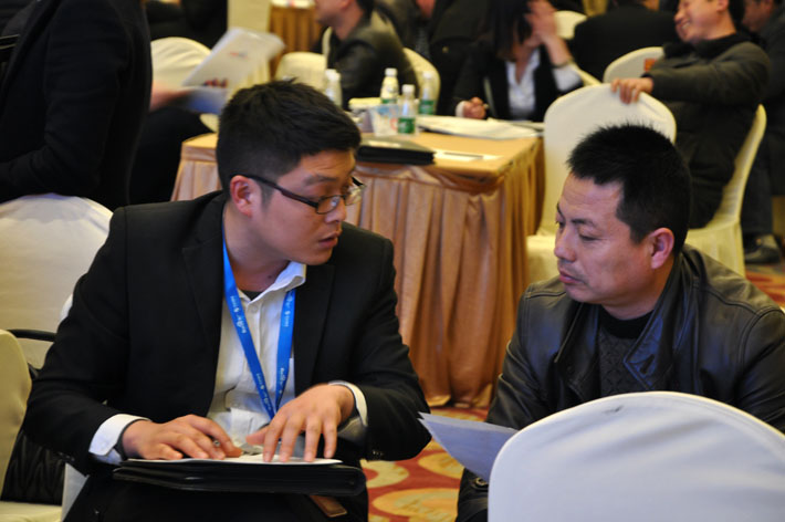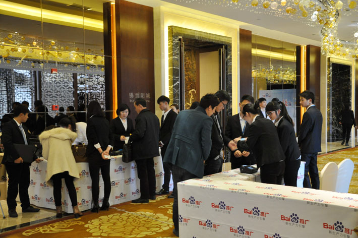 工作人員為企業(yè)家們?cè)敿?xì)介紹百度移動(dòng)搜索推廣