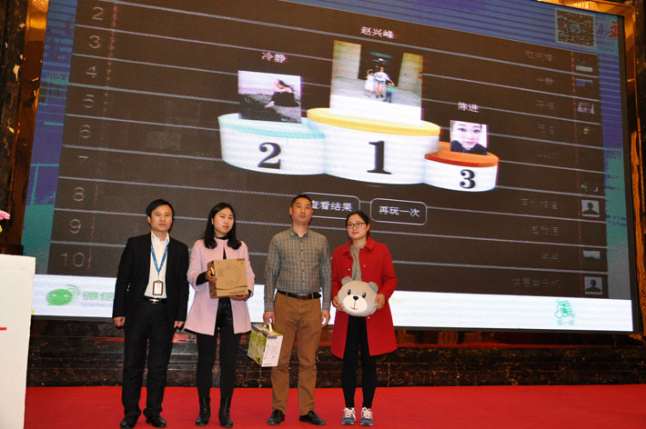 商務(wù)經(jīng)理符昌榮先生和劉阿梅女士為互動(dòng)游戲獲獎(jiǎng)企業(yè)家們頒獎(jiǎng)留念