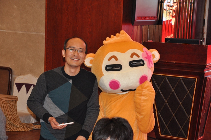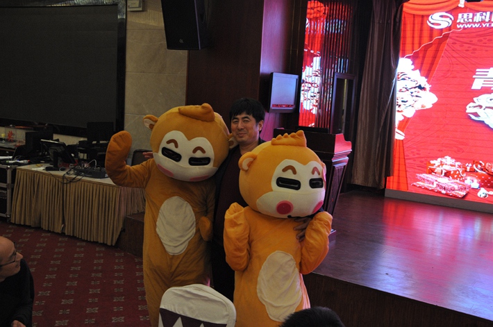 下半場年會(huì)開始了,主持人旁邊站得是誰?就是我們鹽城思科的吉祥物思思與科科,這是我們第一次亮相,好可愛~